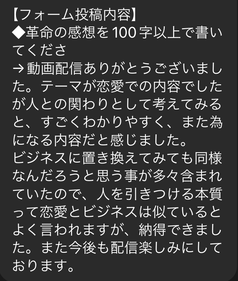 生の感想も既にいただいているからこそ